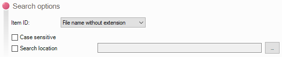 - Es muss angegeben werden, ob die Suche mit Berücksichtigung der Erweiterung oder ohne Berücksichtigung der Erweiterung durchgeführt wird, je nachdem, welcher Dateiname in der Importdatei angegeben ist.