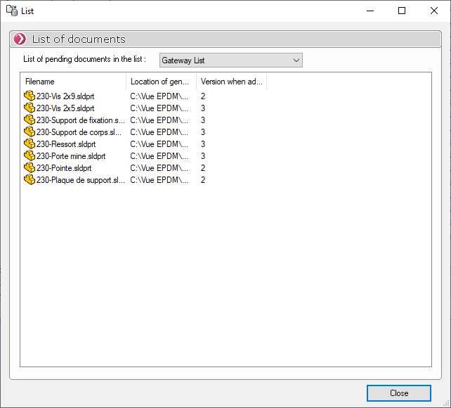 Um eine Gateway-Liste anzuzeigen, können Sie über das Kontextmenü gehen, das in den Optionen der Liste oder in der Aufgabe, indem Sie auf die Schaltfläche klicken: