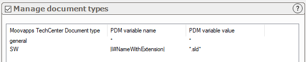 In unserem Beispiel werden Dateien, die "sld" in ihrer Erweiterung enthalten, dem Typ "SW" zugewiesen und andere dem Typ "general".