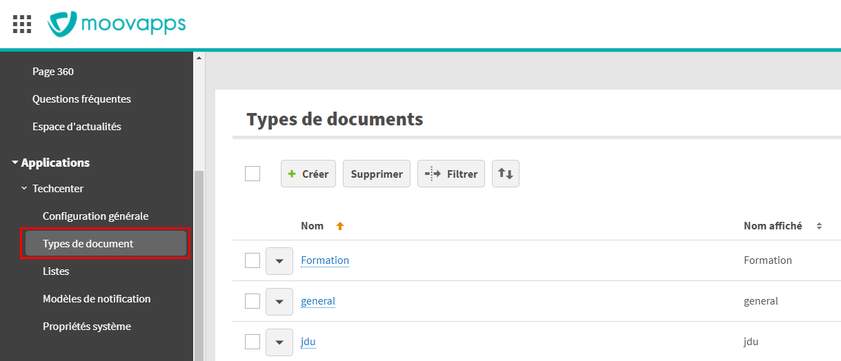 Die Dokumenttypen findet man in der Moovapps TechCenter-Administration.