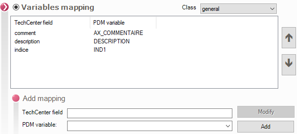 - Mit der Option "Variablenabgleich" können Sie einen Namensabgleich zwischen PDM-Attributen und Moovapps TechCenter -Eigenschaften vornehmen: