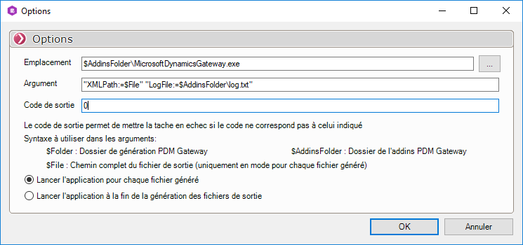 - Für jede erzeugte XML-Datei starten Sie die ausführbare Datei, die in dem Speicherort mit den verfügbaren Argumenten definiert ist