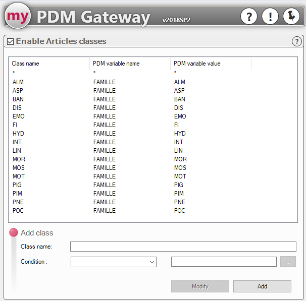 Es ist möglich, Artikelklassen hinzuzufügen, zu bearbeiten und zu löschen durch den folgenden Bildschirm.