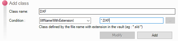 Die folgende Schnittstelle bietet das Hinzufügen von Klassen durch die Definition der folgenden Informationen an: