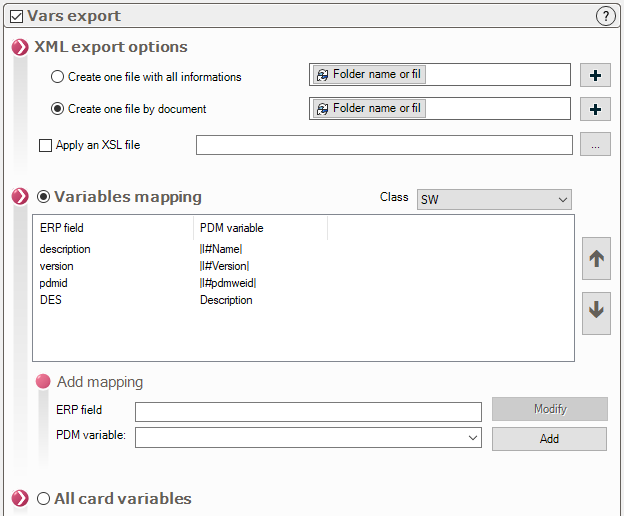 Eine Option ermöglicht es, im XML-Format eine Datei zu erstellen, die die Variablen der exportierten Dokumente enthält.