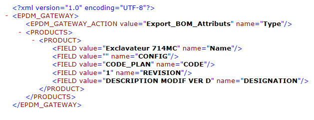 Die folgende XML-Datei ist die von PDM Gateway ohne Transformation erzeugte Datei.