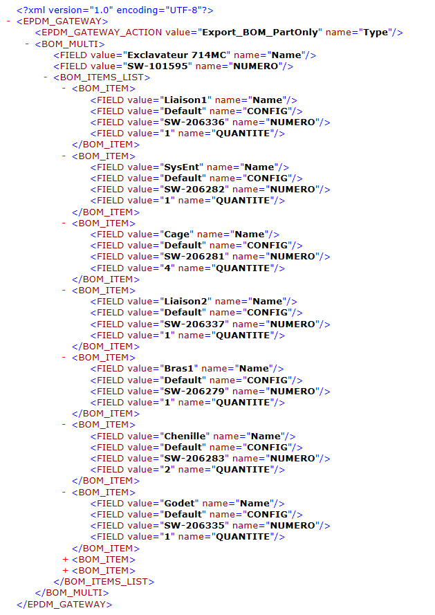 Die folgende XML-Datei ist die von PDM Gateway ohne Transformation erzeugte Datei.