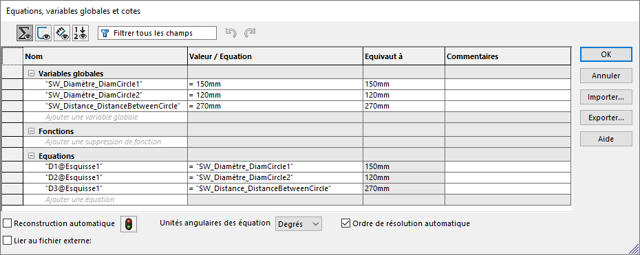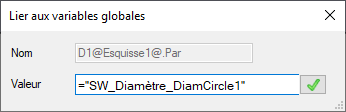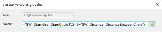 Une fois la syntaxe validée, on retrouvera le résultat dans le gestionnaire d’équation de SOLIDWORKS.