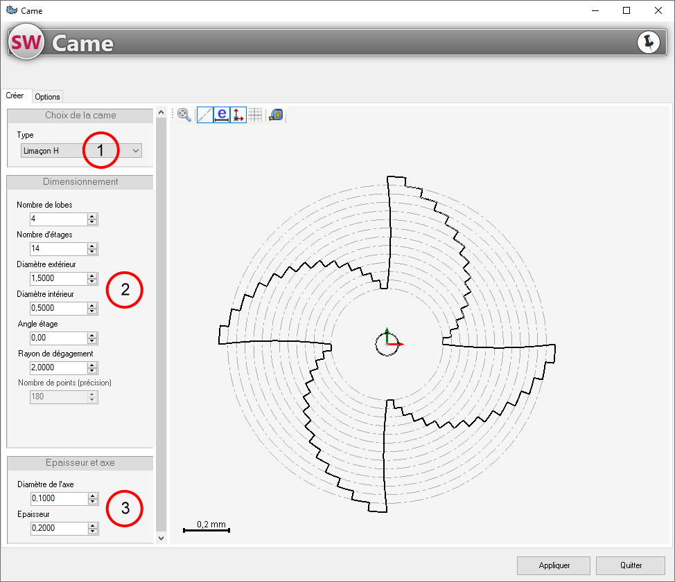 Ce module permet de générer toutes sortes de cames horlogères (Limaçon, Quantième, Sonnerie, Escargot, Analemme …).