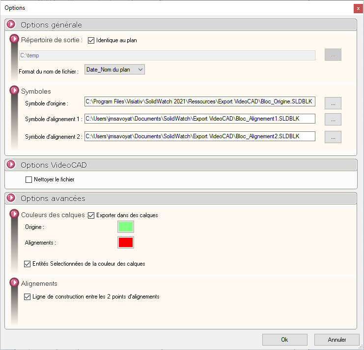 Il est également possible d'utiliser des symboles différents pour l'origine et les alignements, il suffit de personnaliser ces blocs et de sélectionner le fichier de bloc désiré correspondant dans cette fenêtre.