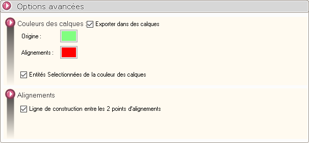 Il est possible de créer automatiquement une ligne droite de construction reliant les 2 points d'alignements. Cela peut être utile pour vérifier, par exemple, si cette ligne passe ou non par le point sélectionné pour l'origine. En décochant cette option, la ligne ne sera pas créée.