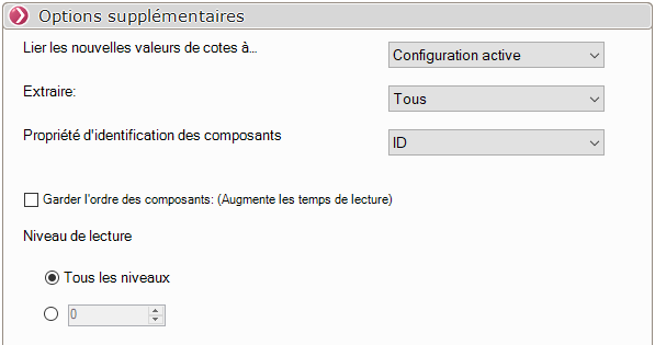 Si vous avez un assemblage de tête qui comporte plusieurs niveaux de sous-assemblage et que vous ne souhaitez pas tous les exploiter, vous pouvez spécifier le niveau à prendre en compte.