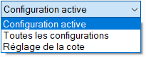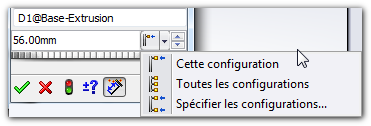 Un menu déroulant permet de choisir, lors de la modification d'un assemblage depuis la table, si la nouvelle cote d'un composant doit s'appliquer à la configuration active, à toutes les configurations ou suivant le réglage lors de l'enregistrement de la pièce (Réglage de la cote).