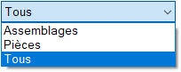 Nous choisissons ici si l'on doit construire la table avec tous les composants de l'assemblage de tête ou uniquement les composants "Pièce" ou uniquement les composants "Assemblage".